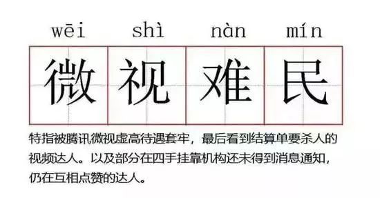 微视难民,特指被腾讯微视虚高待遇套牢,最后看到结算单要杀人的视频达人。以及部分在四手挂靠机构还未得到消息通知,仍在相互点赞的达人。
