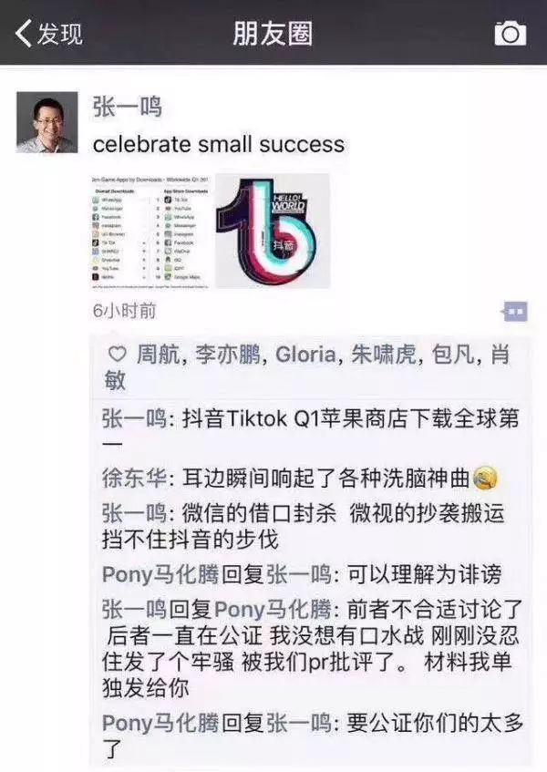 不仅如此,微信还封杀了其他所有的短视频内容,引发了张一鸣和马化腾朋友圈之间的互怼,两家公关现在还在吵得不可开交,闹上法庭。