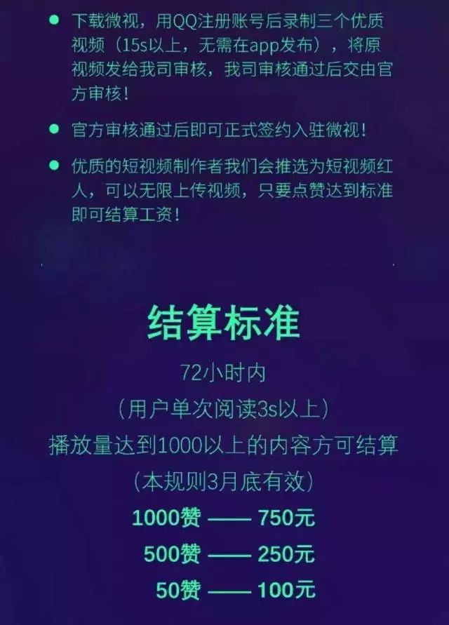 虽然补贴标准五花八门,换来换去,短视频创作者们达成共识:微视补贴特别高,先入驻再说,只要能按照要求完成短视频,就能拿到不菲的收入。
