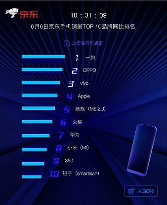 9日竞速OPPO表现突出锤子重夺同比销量榜首