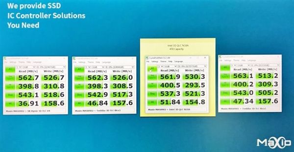 Maxio(杭州联芸科技)日前展示了 基于Intel 3D QLC闪存的SSD样品,容量高达4TB。