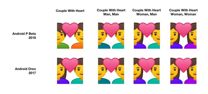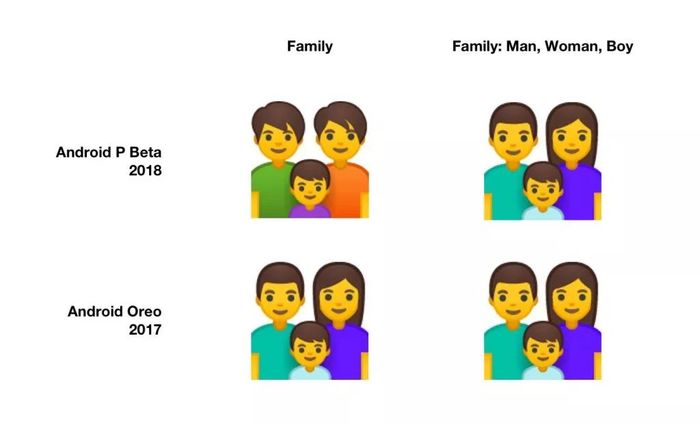 今天早些时候,Google发布了AndroidP新的测试版,同时也更新了不少emoji,其中一组「中性性别」新emoji值得注意,以后Android里的「情侣」和「父母」等emoji不再是默认为男女搭配了。