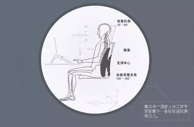 腰椎压力可从一般椅子的 140% 降到 75% 左右。