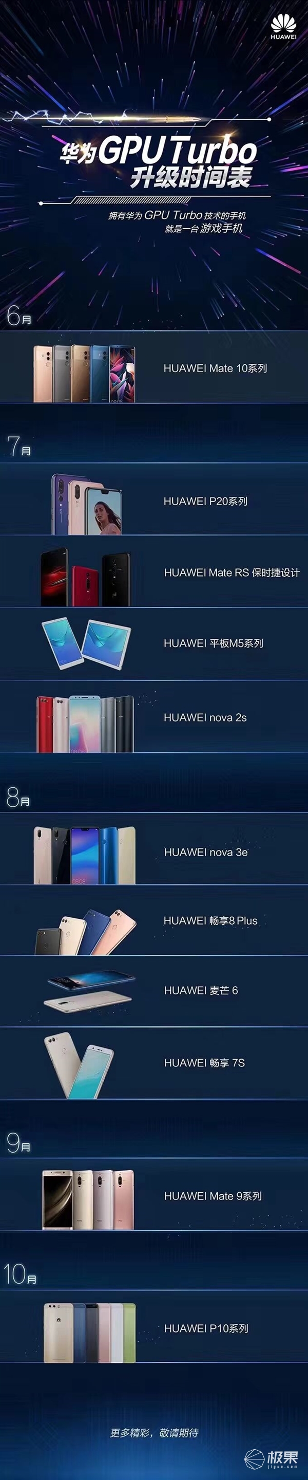 GPU Turbo 技术是由华为 2012 实验室、海外研究所等多个科研团队合作的结晶,首发于荣耀 Play、荣耀 9i 两款手机,盖华为旗下 25款相关机型涵,其中,华为,Mate 10 系列以及荣耀 V10 两个系列的手机能够在本月体验到GPU Turbo 技术的流畅性。