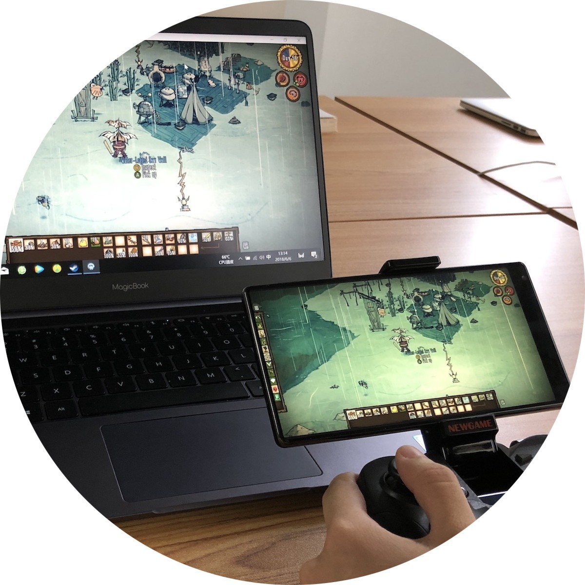 不过,需要说明的是,手机串流对电脑的硬件消耗非常大。在通过 Steam Link 玩饥荒游戏的过程中,MagicBook 已经火力全开,风扇在高速运转。也就是说,开启手机串流后,同样一款游戏,对电脑的配置要求会提高。