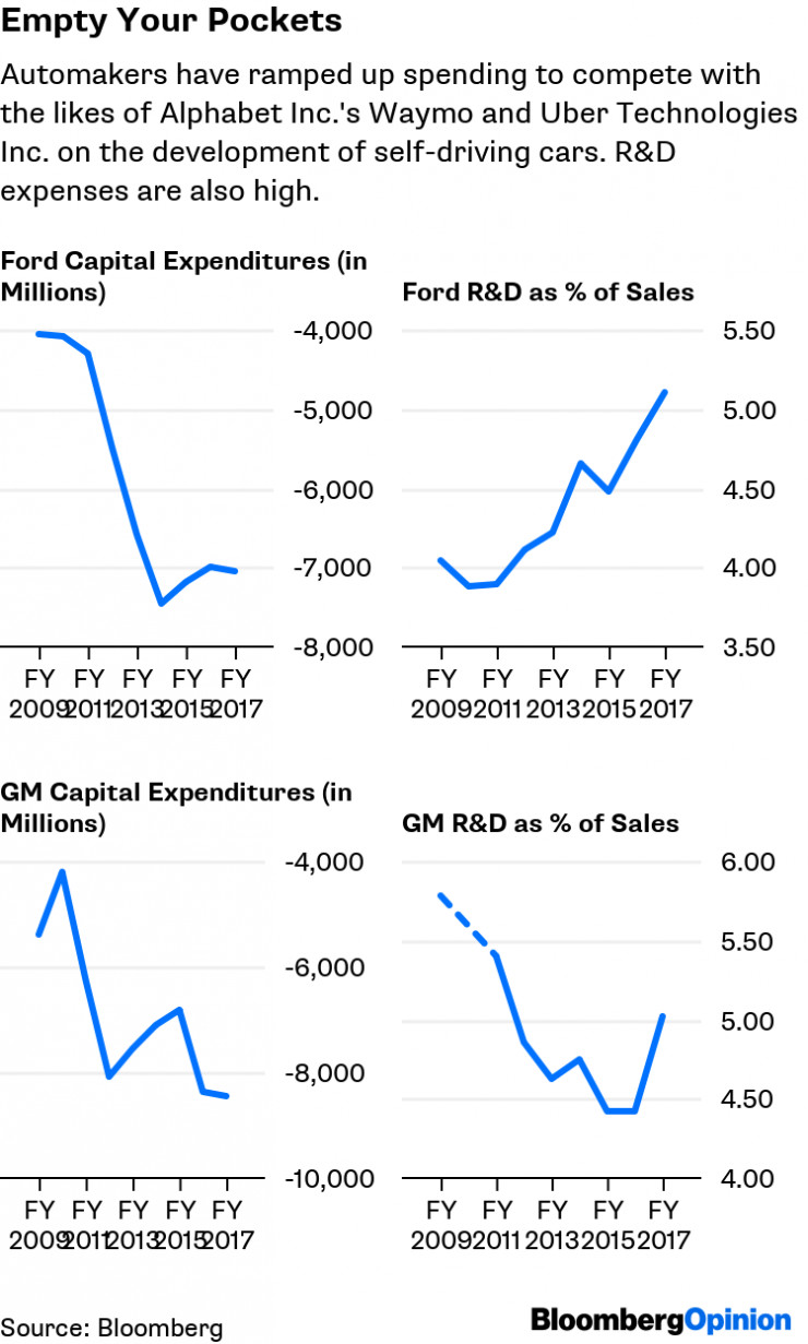 为了自动驾驶,两家公司的研发投资都在不断攀升