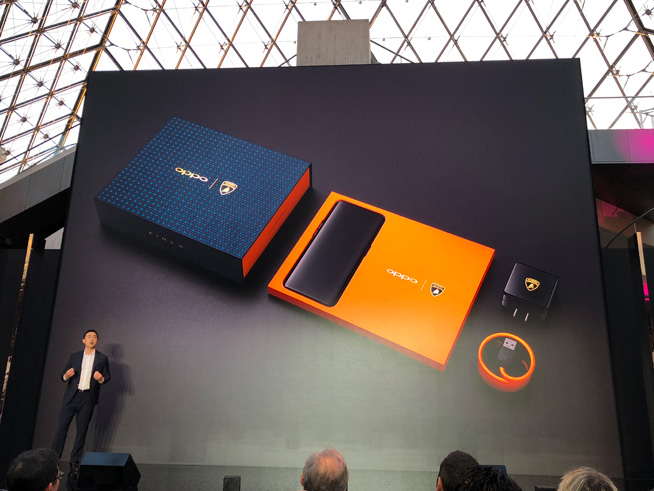 有些遗憾的是,现场科客君并未体验到兰博基尼定制版OPPO Find X。这款海外售价高达1699欧元(约12760元)的定制版在玻璃材质中加入炭纤维纹路,背面有醒目的悬浮立体效果兰博基尼LOGO,采用特别礼盒包装,机身存储空间增加至512GB,并且还率先支持最高50W输出的超级闪充技术,可在35分钟内充满内置的3400mAh电池(双1700mAh电芯)。