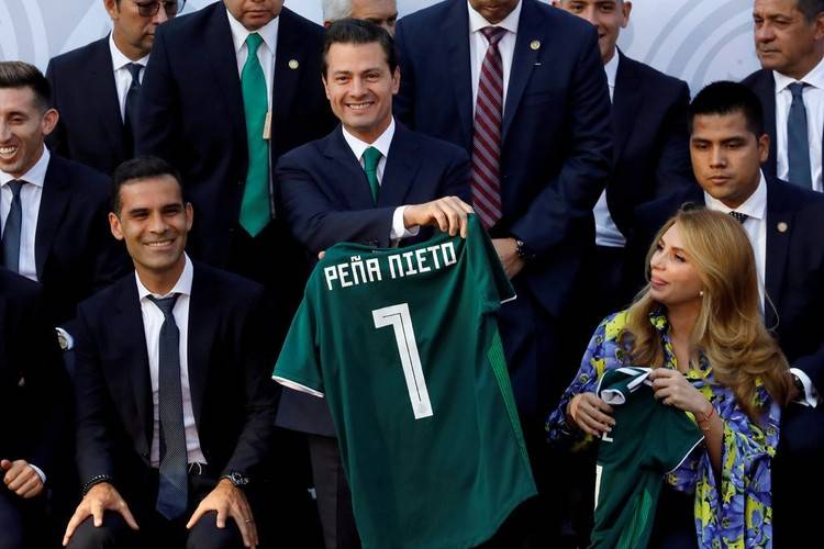 (墨西哥总统涅托和世界杯球队合影,右边就是马克斯)