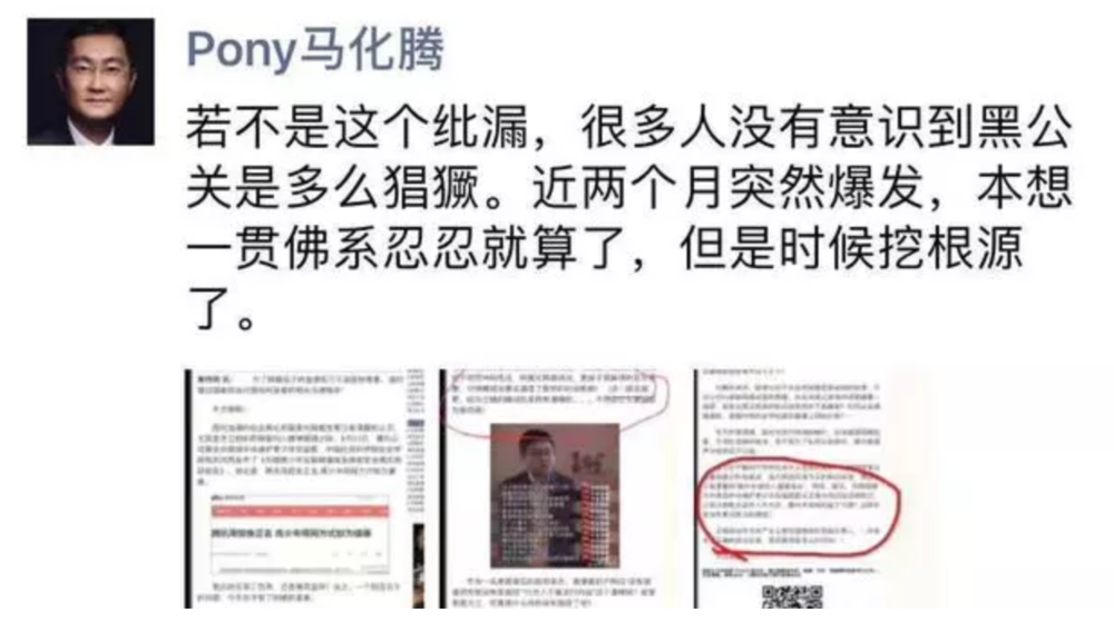 因为一篇没有删去括号里面“这一段去掉吧”的内容的黑公关稿,和前段时间的“新华网”事件,佛系马化腾也坐不住了,前几日他发朋友圈称,是时候挖一下黑公关的根源了。