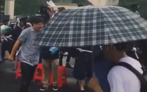 【PConline资讯】6月26日上午9点多,暨南大学2016级广告专硕研究生到校门前拍摄毕业合照,但在拍摄时突然下起了大雨。身着硕士服的23位毕业生们站成前后两行,与端坐在最前排的3位老师,共同冒雨完成了毕业照的拍摄。