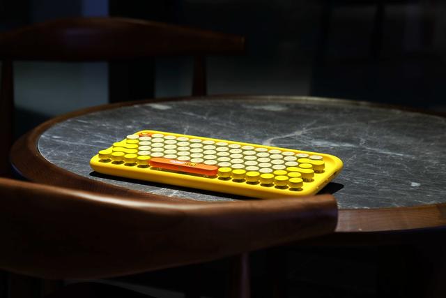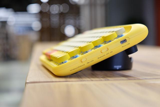 相比于电竞机械键盘的科技感外形,洛斐的圆点蓝牙机械键盘就显得灵动了许多。小黄鸭选择了类似“复古打字机”的设计,外形相比传统智能音箱确实可爱了许多,整体看过去,你会感觉这是一款卡通化的键盘。