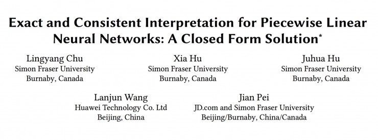 西蒙弗雷泽大学(Simon Fraser University,SFU)计算科学学院裴健教授团队的论文《Exact and Consistent Interpretation for Piecewise Linear Neural Networks: A Closed Form Solution》(图 1)不仅为这个问题给出了肯定的答案,更给出了一种形式优美的解析解,在大家关注的模型解释性的多个方面都取得了出色的表现。