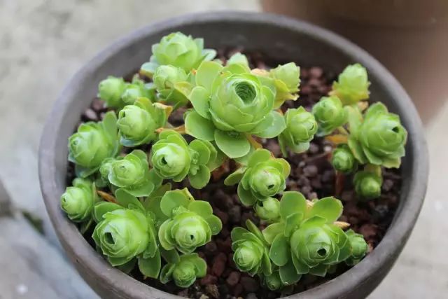 多肉爱好者们一定知道,有一种多肉因为像玫瑰而得名,它就是山地玫瑰Aeonium aureum。不过它们并非是长在山地上的玫瑰,而是一类景天科多肉植物的统称。之所以叫山地玫瑰,并不是因为它们开花像玫瑰,而是由于在夏季高温期,它们莲座状生长的叶片会并拢进入休眠状态,活脱脱像个玫瑰花蕾。
