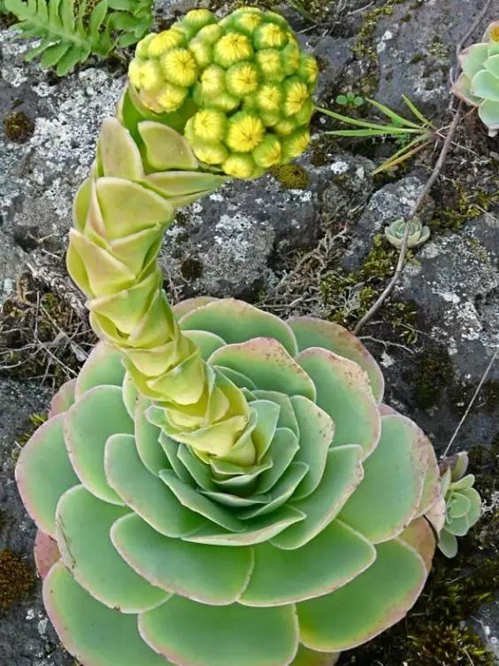 山地玫瑰是莲花掌属Aeonium植物,来源于古希腊语的“aionos”,意为“永恒的”。然而讽刺的是,该属约35个物种,开花之后母株都会慢慢凋亡。