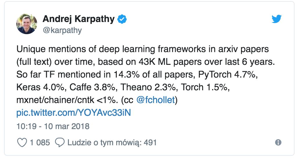 我们强烈建议你选择 Keras 或 PyTorch。它们都是非常强大的工具,且不管是学习还是实验都很有乐趣。我们是从教师和学生的角度考虑的。本文作者 Piotr 在企业举办过 Keras 和 PyTorch 研讨会,Rafał则正在学习这两种框架。