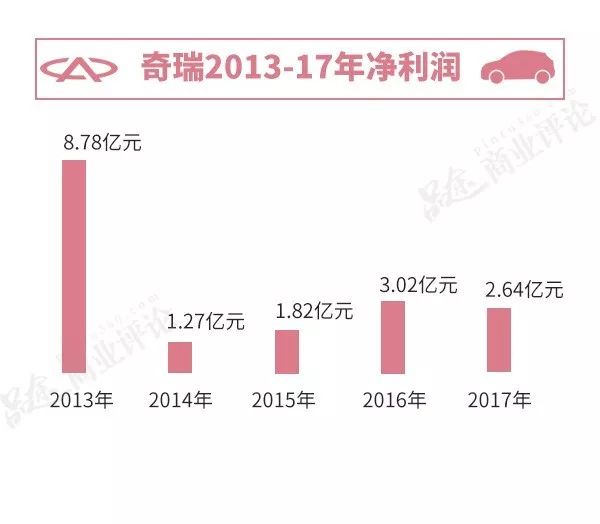 奇瑞还有一大关键问题,就是盈利能力较低,经常靠政府补贴度日,从2013年-2017年,奇瑞汽车净利润分别为8.78亿元、1.27亿元、1.82亿元、3.02亿元和2.64亿元,但负债率则一直维持在75%左右。