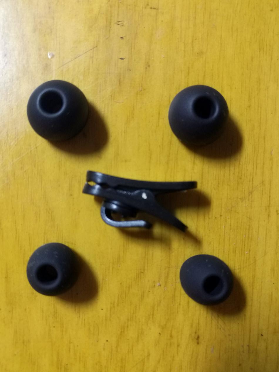 耳机共配置了三个不同大小的医用硅胶材质耳塞,能够满足不同人群的需求。耳机线夹可以在佩戴时固定耳机线,以达到稳定耳机的作用。