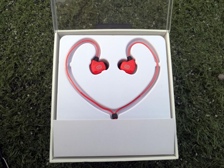 在包装盒中,耳机主体以心形摆放,给人怦然心动的感觉。