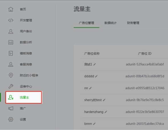 开通流程也很简单:进入微信公众平台小程序后台,点击左侧面板“流量主”,满足开通门槛的小程序开发者直接点击“开通”即可创建相应的广告位。