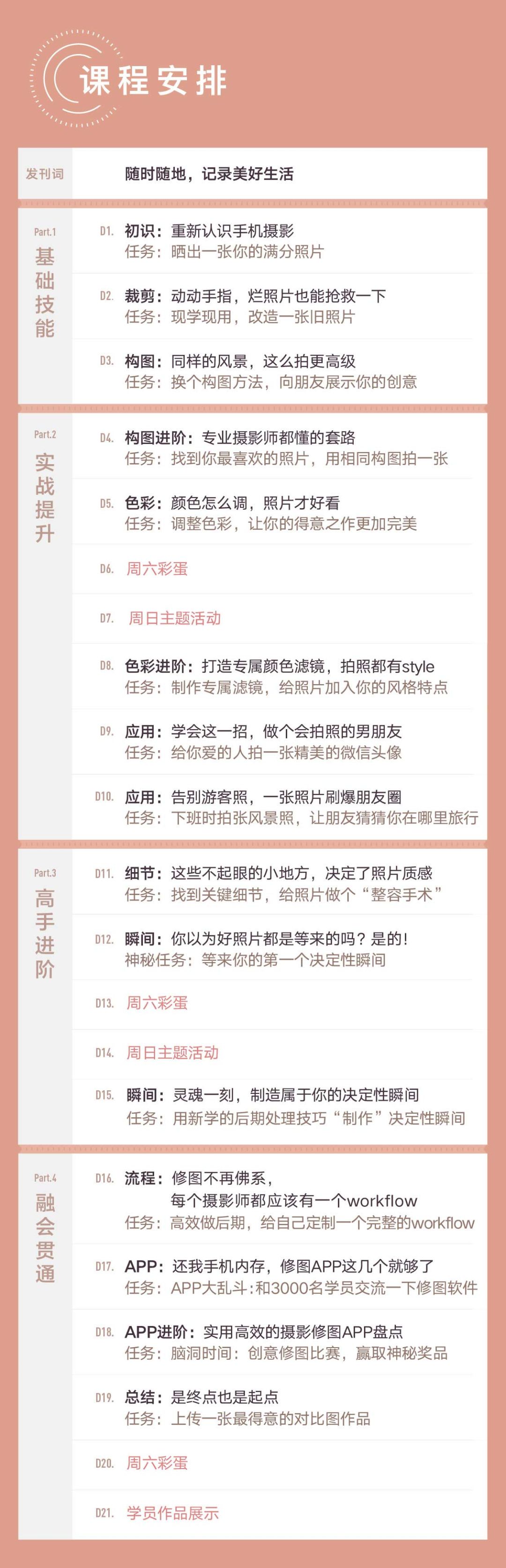 不仅如此,他还想教你点别的,让你在21天内蜕变成为手机摄影高手。