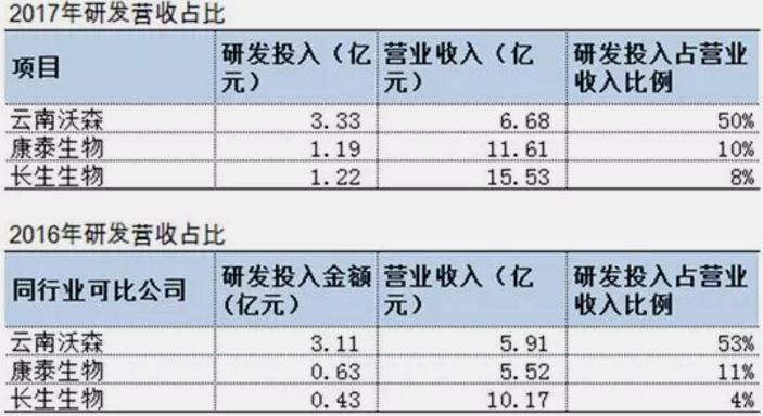但从研发投入来看,长生生物就不那么牛了。
