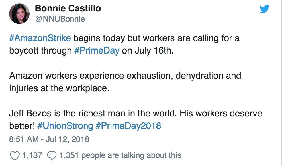 上周二,西班牙亚马逊员工已经开始全面罢工,将持续到本周一。其他欧洲国家,包括意大利、法国、英国、德国和波兰在内的亚马逊员工也证实将于Prime Day开始罢工。