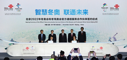 12月26日晚间,在中国联通大厦里,中国联通的红色"中国结"与北京2022年冬奥会会徽和冬残奥会会徽的组合标志格外醒目,中国联通与北京2022年冬奥会和冬残奥会组织委员会签约仪式在这里举行。这场签约,标志着中国联通正式成为北京2022年冬奥会和冬残奥会官方通信服务合作伙伴,跻身于北京冬奥组委市场开发计划最高级别的赞助企业之列。