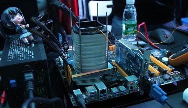 最初的超频都是以一种实用的心态去进行,后来又那么一小撮玩家想要知道处理器的极限究竟是多少,在降温方面开始无所不用其极,最初的风冷已经不能满足了超频玩家,水冷开始登上舞台,当然不是我们今天常见孱弱的一体式水冷,而是看上去很原始的分体水冷。 到了后来更极限的玩家发现水冷也不能让温度更低,干脆就使用液氮进行降温。 最近本辣条的8700K用风冷仅仅能上到5.2G稳定,坚持跑完分还能正常使用,但是温度真的很高,在仰望众多大神超频到7G的时候,本辣条的心真的好痒痒,我什么时候才能上到7G呢?看来非上液氮不可了。