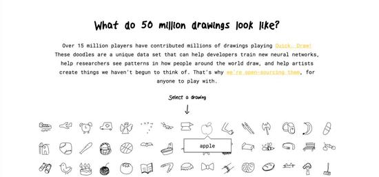 大方的谷歌并没有私吞这些网友智慧的结晶,截止今年五月,这款游戏的网页版已经从全球各地收集了五千万份不同的绘画,并且在谷歌上开源了数据库。