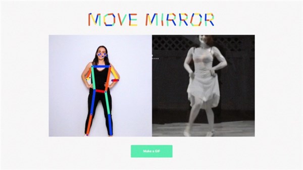 Move Mirror是谷歌所谓的姿势预计(pose estimation)的有趣演示:追踪人物在3D空间中移动时的身体。这是一个棘手的任务,人们的身体有各种各样的形状和大小,镜头中经常有无生命的物体和其他个体,有些人使用轮椅和拐杖等辅助设备,所有这些都会对识别造成困扰。