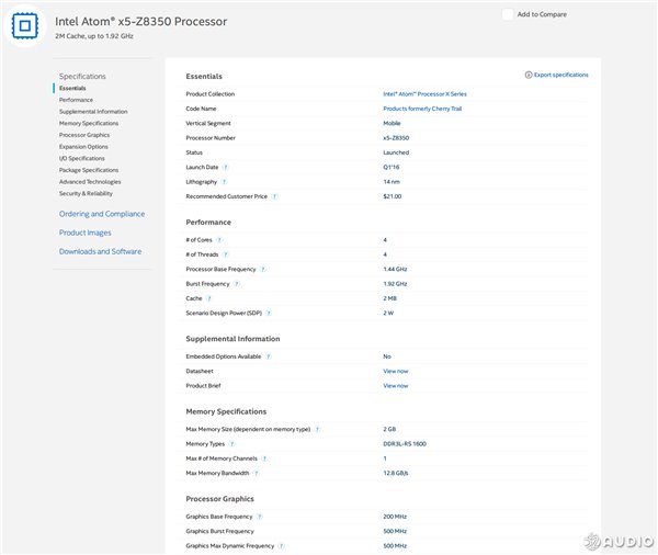 Intel英特尔Atom x5-Z8350详细资料。