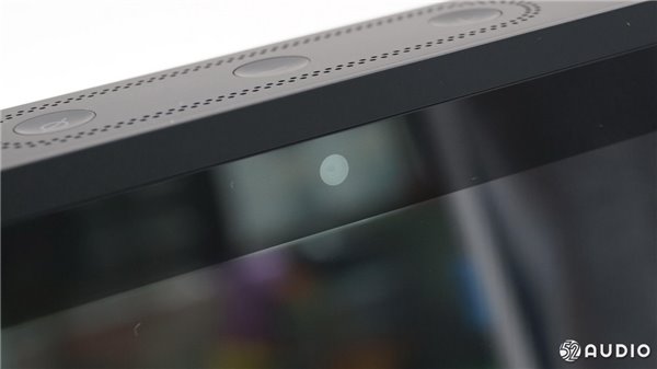 Echo Show采用正面前置出声设计,正面的屏幕下方是扬声器开孔,下面隐藏了两个发声单元。