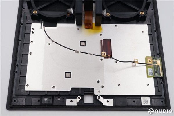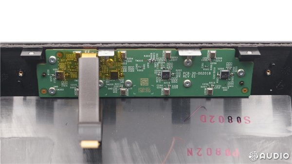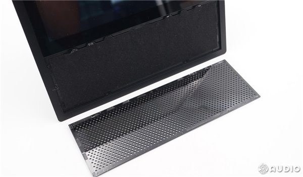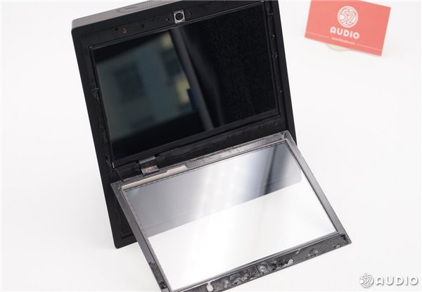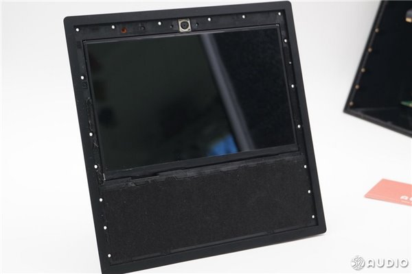 音箱正面这块屏幕大小为7.0英寸,分辨率为1024*600,像素密度为170PPI,支持触摸操作。通过所拍摄的图片可以看出,熄屏状态下,这块屏幕显示出近似灰白的颜色,而且显示层与外层玻璃之间存在很大的空气间隙。所以这块屏幕并没有采用全贴合工艺,而是采用了比较传统的GFF方案。