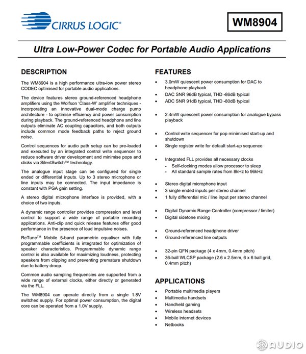 Cirrus Logic WM8904详细资料。