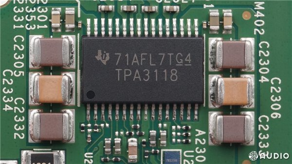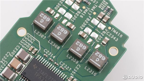 TI德州仪器TPA3118数字D类功率放大器,两侧不同容量,不同颜色的MLCC并联。