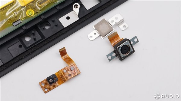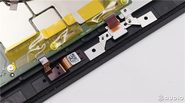 正面面板顶部的摄像头等元件用排线与主板连接。