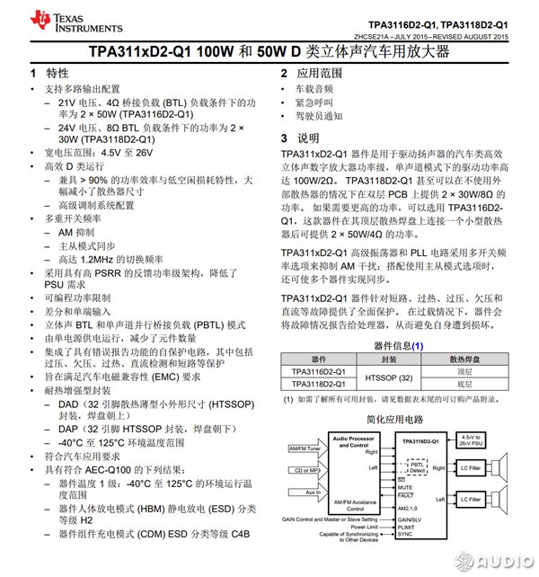 TI德州仪器TPA3118详细资料。
