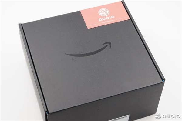 包装整体简约,以黑色为主色调,正面只有一个Amazon亚马逊标志性的微笑Logo。