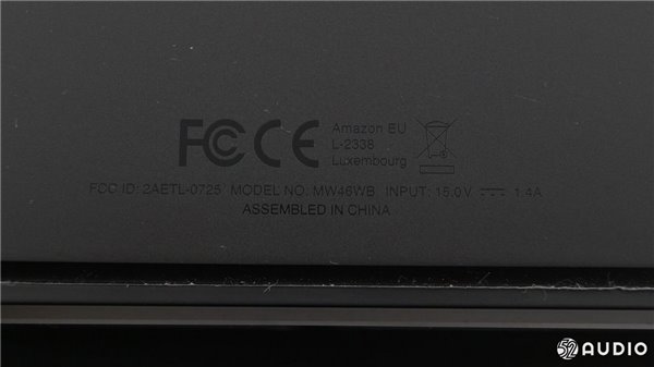 机身下面是一整块防滑橡胶垫,电源输入15v /1.4A。Echo Show的底座整体呈现出一个等腰梯形的形状。