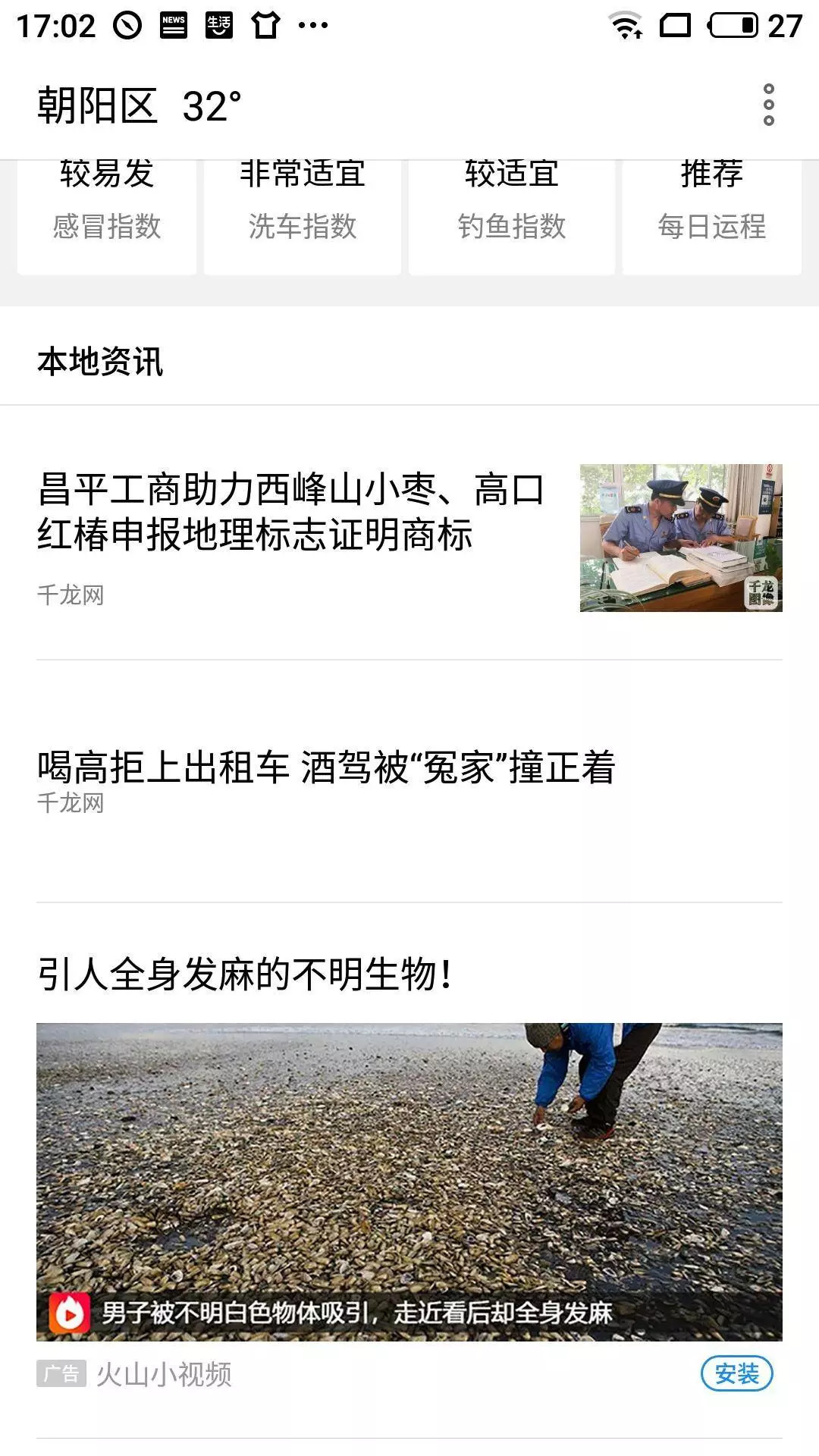「天气」应用中有可关闭的本地资讯。