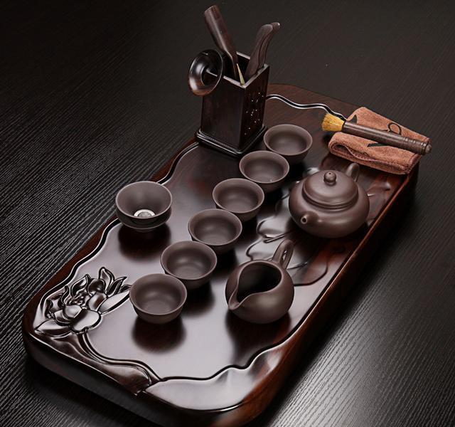 家居摆设一套高档大气的黑檀木茶盘茶具套装,提供您家居装修档次