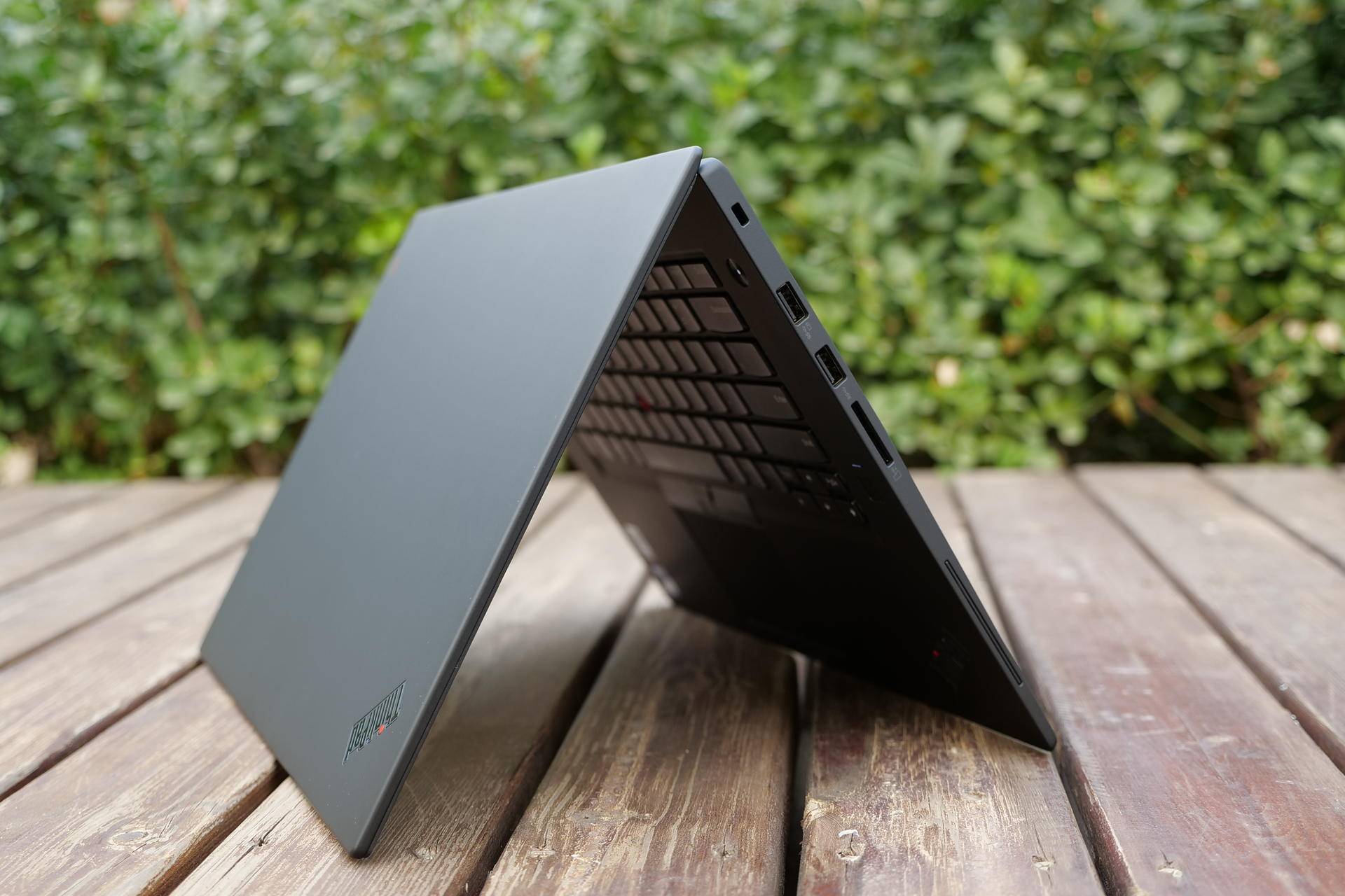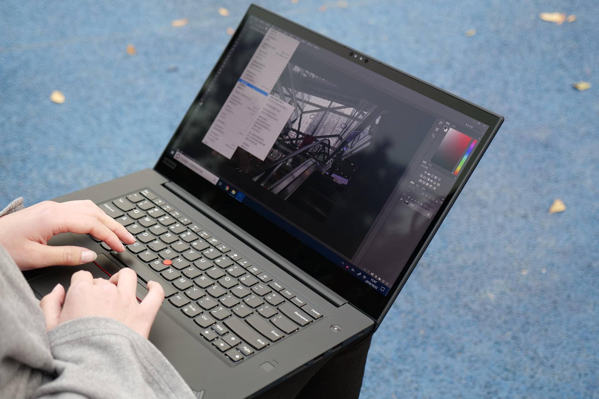 X1 隐士的外在最值得说道的应该就是B面的这块屏幕,搭载一块15.6寸4K HDR IPS高亮度显示屏,分辨率为3840*2160,100% Adobe RGB 色域,带来接近现实色彩还原,10 bit 色深,支持手写笔触控操作,并且通过Dolby Vision认证,可以在观看影片时提升动态范围,增强暗部细节,强化色彩,带来更好的观影体验。但其实使用这一段时间来看,对于其可触控的设计还是持保留意见的,先不讨论触屏在Windows系统上用处到底有多大,但高透的玻璃盖板在阳光下使用反光问题非常严重,相比原来ThinkPad的标准雾面屏,户外场景大打折扣,有失有得。
