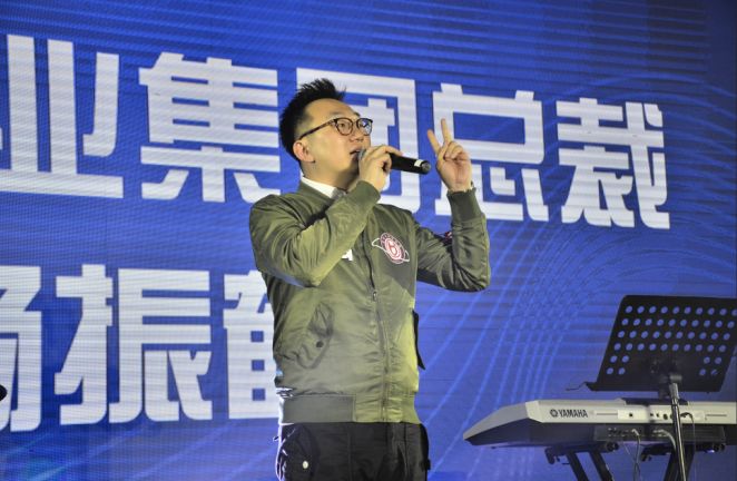 天津展开幕当日的品牌大会上,宝岛车业集团总裁杨振鹤先生登台致辞。