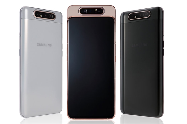 在非异形全面屏的探索中,已经出现了弹出式设计(隐藏式前摄)和双屏设计(后摄+背屏),而三星今天发布的Galaxy A80则是吸收了上述两者之长,采用弹出式翻转摄像头的办法来搞定自拍。