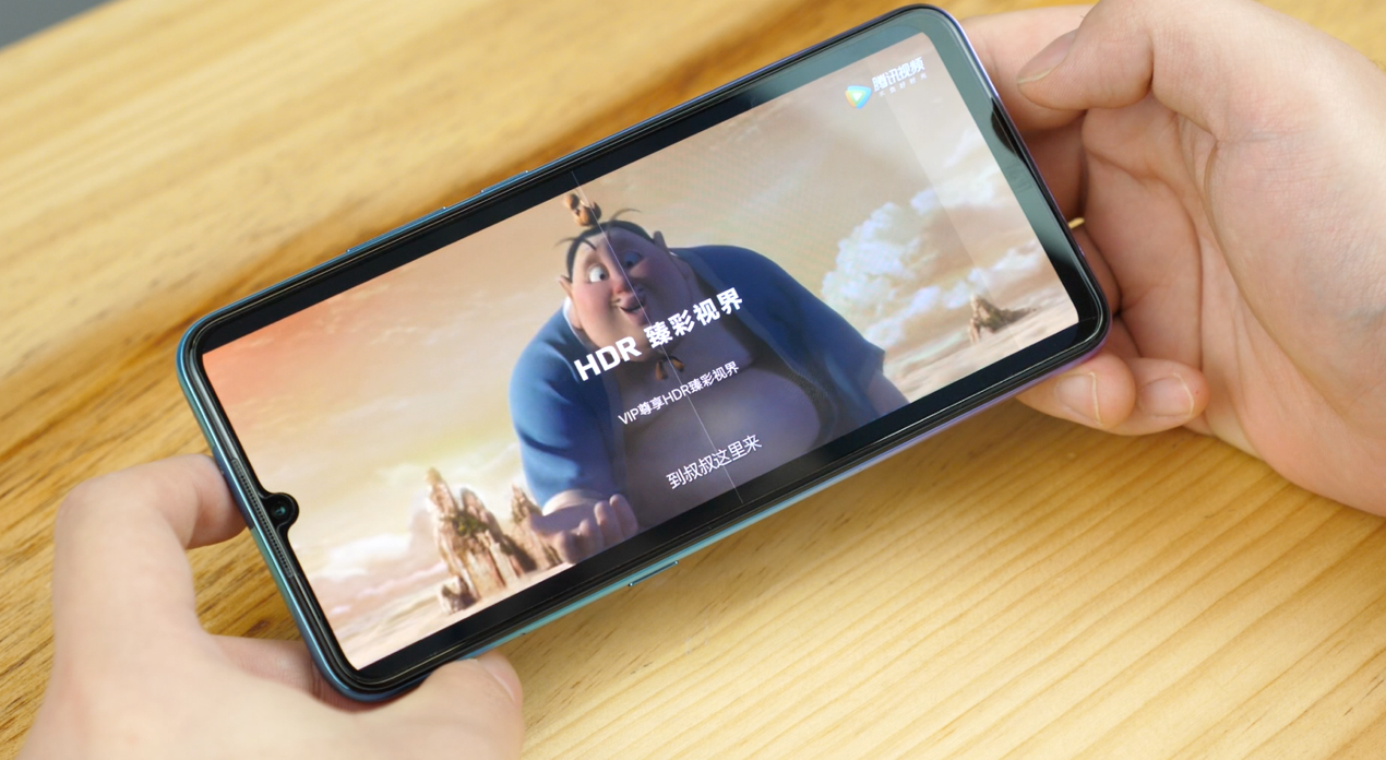 该机正面采用一块6.38英寸AMOLED水滴全面屏,分辨率为2340乘1080,屏幕比例为19.5:9。这次在屏幕上有一个升级就是支持了HDR10显示,可以充分发挥OLED屏幕高对比的优势,在观看影片和玩游戏时,都能获得比普通屏幕更好观感。不过该机可能出于定位以及售价的考虑,如果你看惯了旗舰的四周边框,还是会觉得这款手机正面的边框有些宽厚了,下巴也看起来有些突兀。