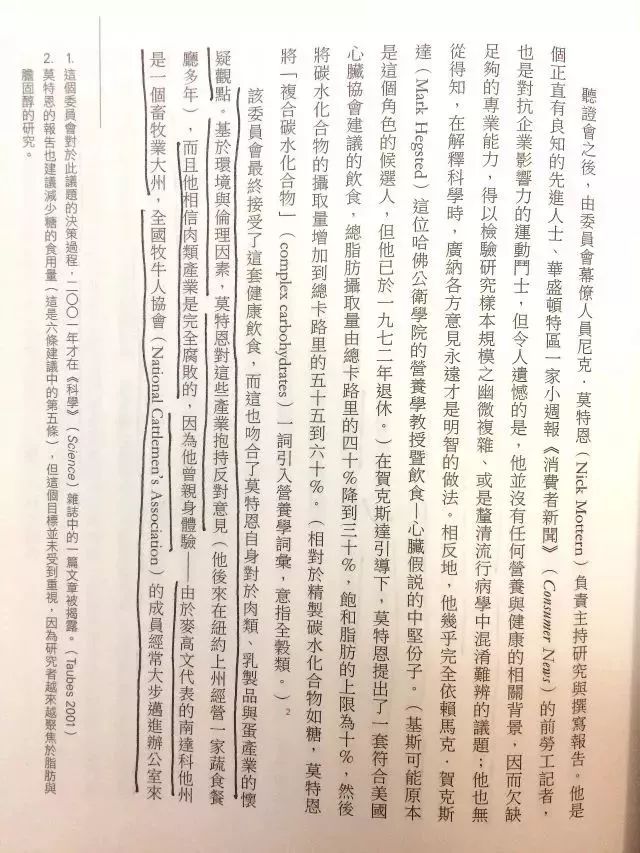...该委员会最终接受了这套健康饮食,而这也吻合了莫特恩(膳食指南撰写人,无任何营养学背景)自身对于肉类、乳制品、与蛋业的怀疑观点。基于环境与伦理因素,莫特恩对这些产业抱持反对意见,而且他相信肉类产业是完全腐败的,因为他曾亲身经验...,全国牧牛人协会的成员经常大步迈进办公室来会见参与员。