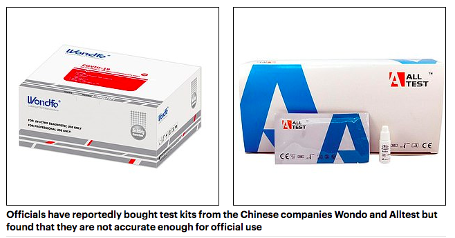这并非个例,三月下旬以来,类似情况曾多次出现,西班牙、荷兰、波兰等欧洲国家都曾爆出中国出口的试剂盒质量低、将不再采购来自中国的相关抗疫物资的消息。