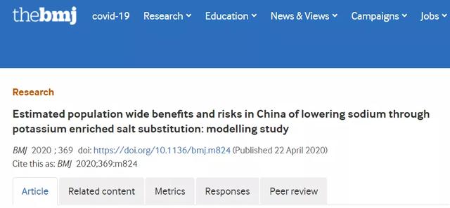 近期,顶级医学期刊《英国医学杂志(BMJ)》发表一项新的建模研究显示,使用含钾食用盐替代普通盐每年可防止近 50 万中国人死于心血管疾病。