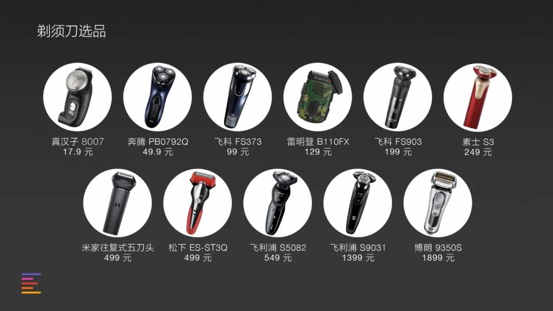 出于职业习惯,我决定要弄懂其中的问题。就买来了市面上11款电动剃须刀,价格从 18.9 一直到 1899,覆盖各个品类,看看这相差了 100 倍售价的背后,究竟是什么?