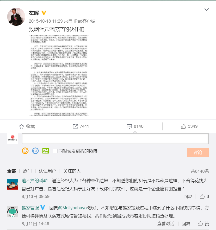 只是,这个微博已经成为了人们控诉链家及贝壳的出口,到处都是负面评论。